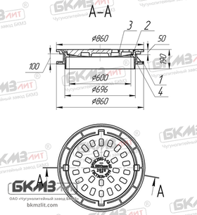 Дождеприемник чугунный магистральный ДМ1 (С250)-1-12-60 плавающий