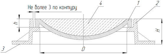 1 – крышка; 2 – корпус; 3 – опорная поверхность корпуса; 4 – бетон